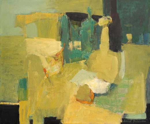 Lionel GilbertTablescape (Mid-Century Abstract, Cubist Still Life Painting in Grey