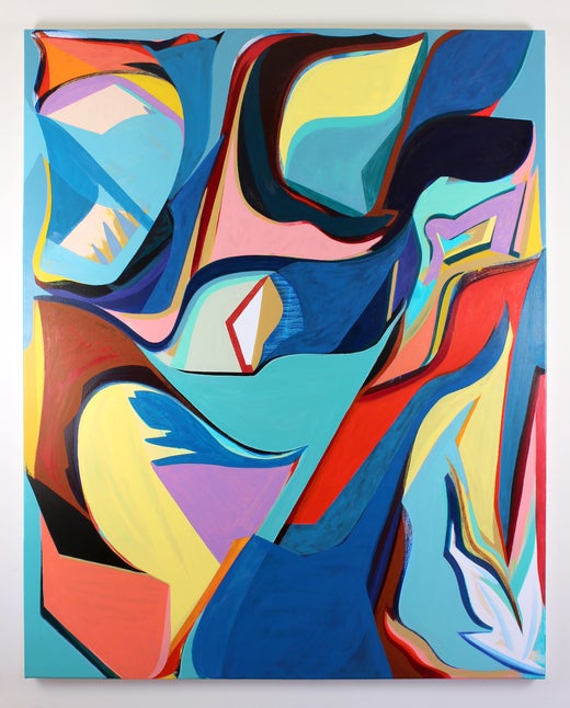 The artist begins her work with a brush mark or a painted shape on the canvas and then performs a series of reactions to each gestural move. She is aiming to connect to the viewer through the language of abstraction as the visual representation of everyday experiences filtered through mark making and color.