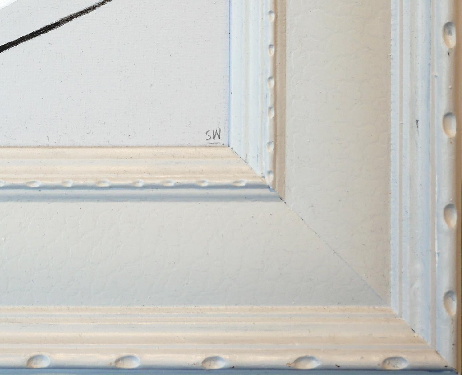 "Window of opportunity" is a contemporary blue mixed media painting by Addison Jones. This is an original, hand-signed piece with a certificate of authenticity.