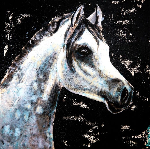Wild Horses, The Race - Painting Brown White Orange Yellow Green Blue Pink Grey