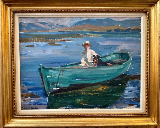 Frederic Whiting, whose picture of the present Queen Elizabeth on Horseback in the palace grounds, accompanied by Her Royal sister, is much treasured by their Royal Mother. He was born in London, son of Alfred Whiting and Julia Grace, née Taylor, trained at the St John's Wood School of Art, the Royal Academy and the Académie Julian in Paris before serving as a war correspondent for The Graphic in China during the Boxer Rebellion and in Manchuria during the Russo-Japanese War. He also taught at Heatherley School of Fine Art with Ian McNab and Bernard Adams. Whiting was a widely traveled painter of many portraits and an associate of the Royal Society of British Artists, Royal Institute of Painters in Watercolours, Royal Institute of Oil Painters, Royal Society of Portrait Painters and the Royal Scottish Society of Painters in Water Colour. Along with exhibiting at these venues, he also exhibited at the Royal Academy, Glasgow Institute of Fine Arts and Liverpool Walker Art Gallery. Whiting died in Surrey, England in 1962, aged 89. Whiting displayed a genius for drawing horses and became a formidable painter of the British Sporting Scene.