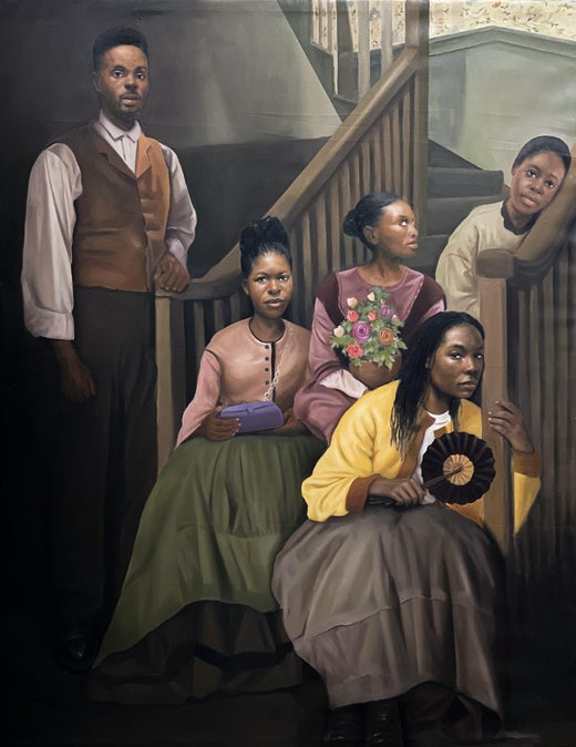 In Gift, Israel Agboola Oladapo continues his exploration of grace, self-possession, and identity through the poised presence of his sitter. Seated in profile against a vibrant plane...