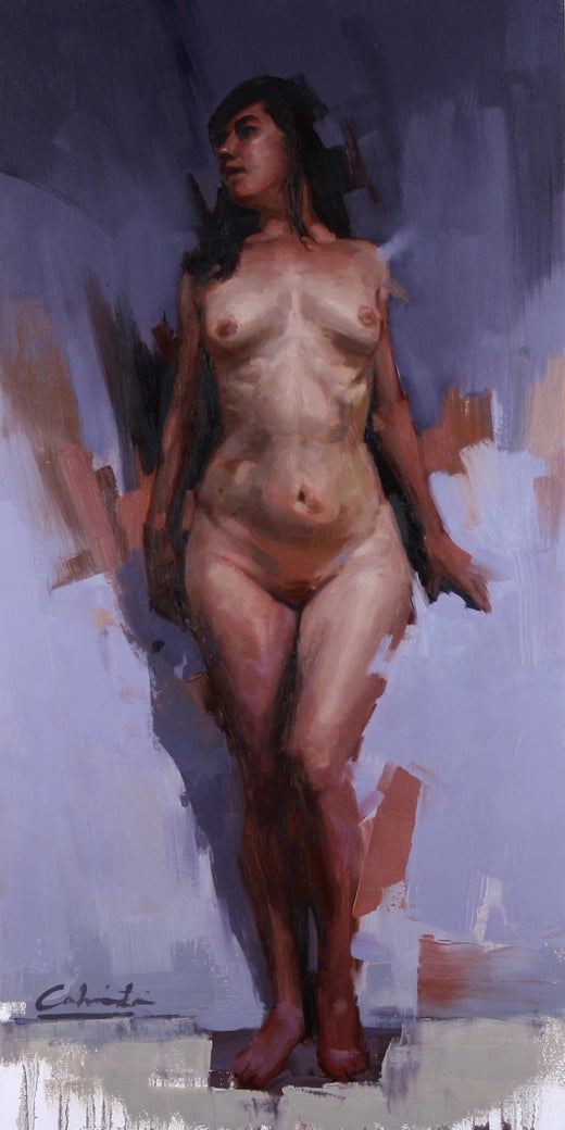 Calvin Lai's (US based) "Approaching Equilibrium" is an original, handmade oil painting that depicts a nude female figure, standing, with her face in profile and dappled in light. ...