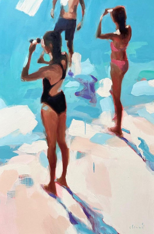 View All"Parallel Views" abstract oil painting of figures standing on a beach