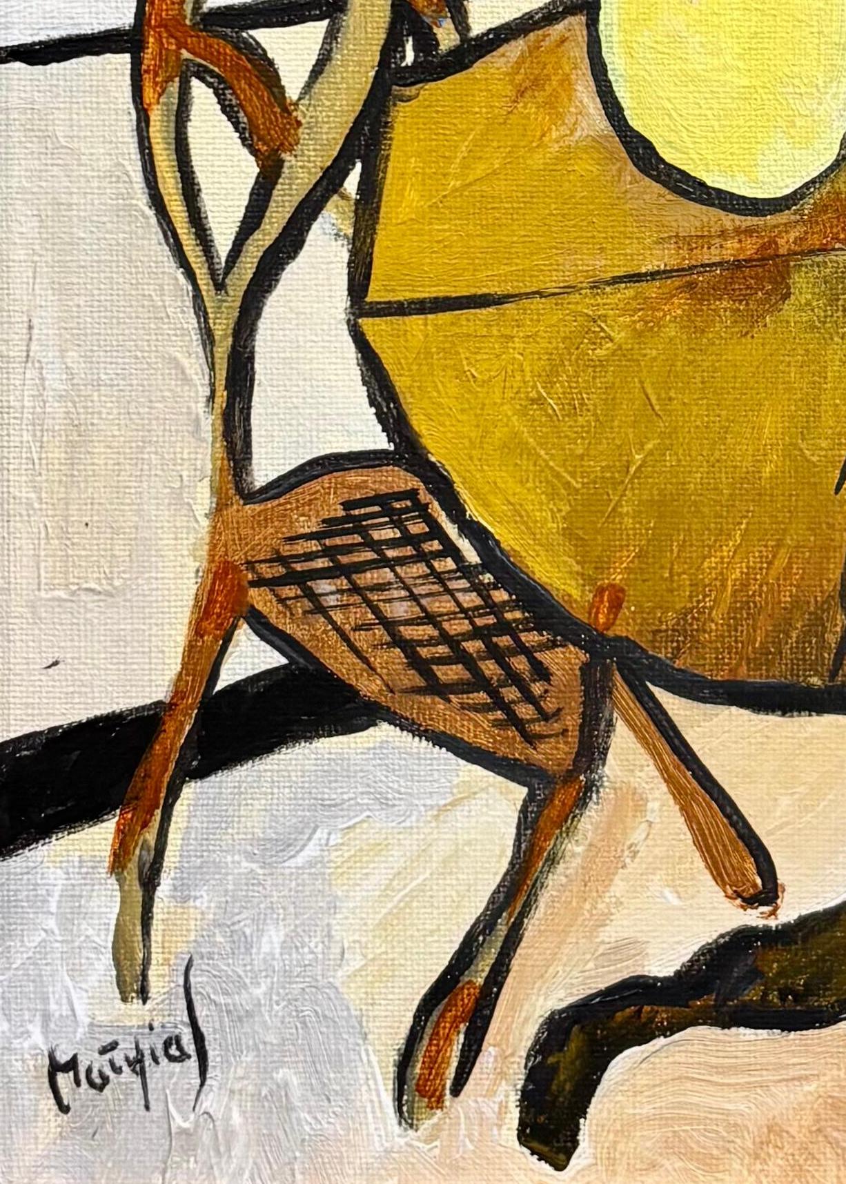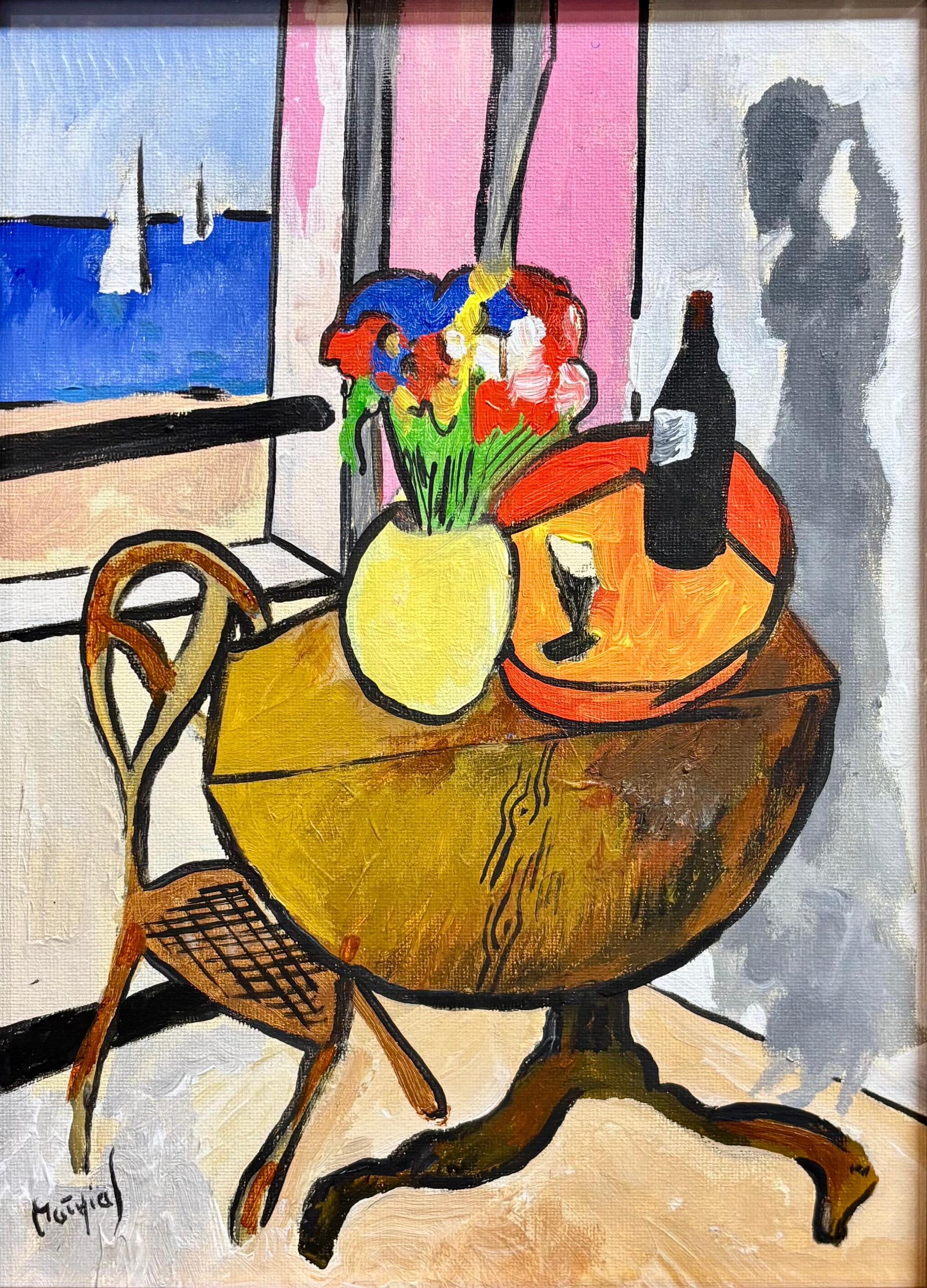 Small-format works like this represent an ideal entry point into Mathias’s oeuvre. A fine example of Mathias’s small-format works, “Tea Time in Royan” offers collectors an accessible entry point into his unique approach to Cubism. Despite its size, the piece carries the full visual and conceptual depth characteristic of his larger paintings, making it ideal for both seasoned collectors and those beginning their collection of modern French cubism.