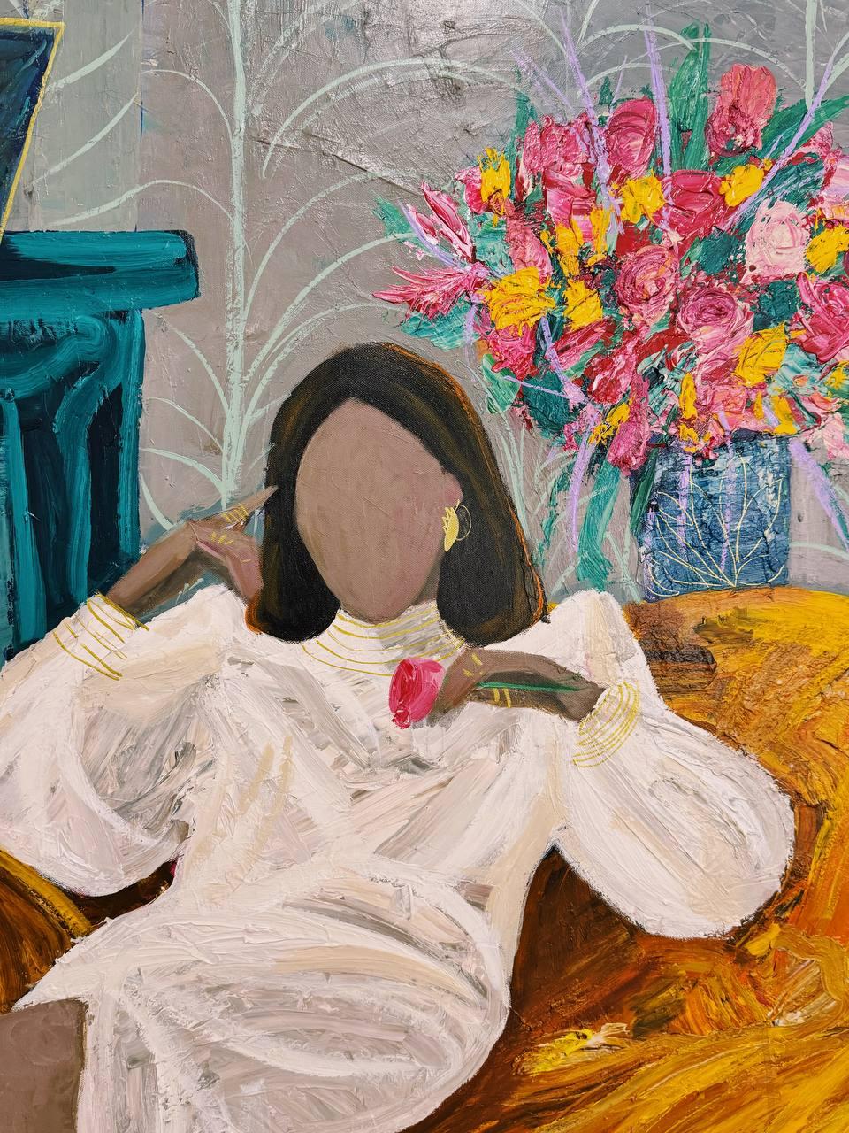 Majnun"Close my eyes with rose petals" , 180x140cm, acrylic on canvas2025