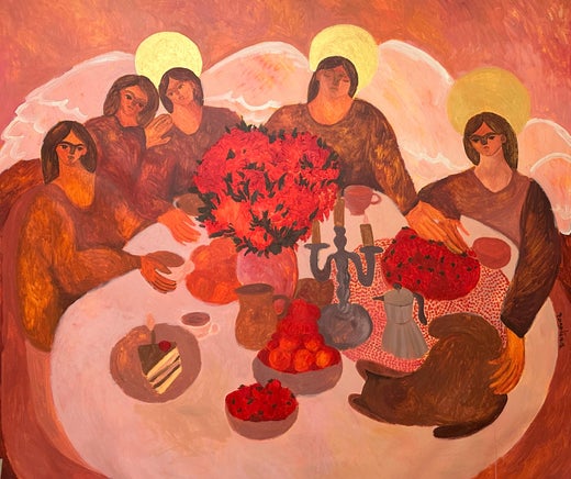 I use the space of naive archetypal images, creating a safe haven from aggressive modernity, with the opportunity to dive into the psychological depths of my own worldview. I build into my paintings the mechanics of oscillation of naivety and mockery, trust and cynicism, chastity and debauchery, strength and kindness, as a manifesto of courage to be vulnerable and herbivorous in a world where food chains still exist.