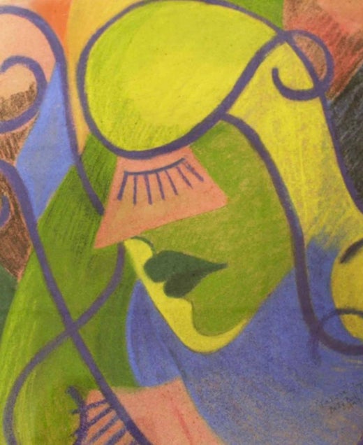 A unique, medium to large scale exotic painting with vivid colours and details. The painting style shows influences from the post-impressionists and fauvists, yet is undeniably conte...