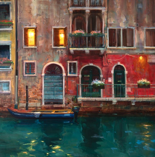 "Painted Red" is a colorful example of Bryan Mark Taylor's modern approach to Impressionism. This beautiful oil on panel captures the mood and feel of the Venice lagoon with the bri...