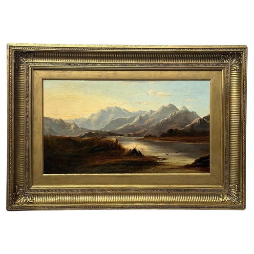Charles LeslieFine Large Victorian Signed Scottish Oil Painting Figures by Loch