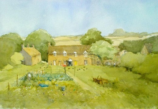 Elizabeth commented: "I have always loved to draw and paint, even as a small child. I drew on everything - steamed up windows and the landing walls of my childhood home, which were painted in magnolia, a perfect base for drawing. This was not very popular! I am happiest when I have a pencil or paint brush in my hand. The countryside still delights me - I love the curves of the landscape and the way the houses and villages grow out of the land. I prefer to paint on location, despite the vagaries of the British weather, and occasionally manage a trip to somewhere warm. Italy, France and Spain, the Isles of Scilly and Barbados offer favourite subjects - geraniums on a Mediterranean balcony , or a quiet street corner, with the interplay of sunshine and shadows. I always knew I wanted to work as a painter."