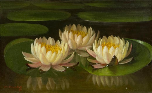 In the decade of the 1870s Hall resumed figure and genre work, while continuing his successful career as a still-life painter. In addition to extensive travel, he established studio/residences both in New York City and in the Catskill mountains. Beginning in 1867, Hall spent summers in the Catskills, near the village of Palenville. From 1874 to 1883, he was a tenant at the famous Studio Building on West 10th Street in Greenwich Village, the center of New York City art life. In Palenville, Hall contributed to the local color by covering the chimney of his studio cottage with tiles he brought home from Spain, a design choice sufficiently idiosyncratic and exotic that the Hall cottage became one of the local tourist attractions. When Hall painted Still Life of Flowers in a White Vase in 1860, he was enjoying his first crest of popularity as a still-life painter. Here Hall puts these lovely and delicate flowers into a porcelain case and places them on his characteristic polished wood table, offering the viewer an image of grace, elegance and simple domestic charm.