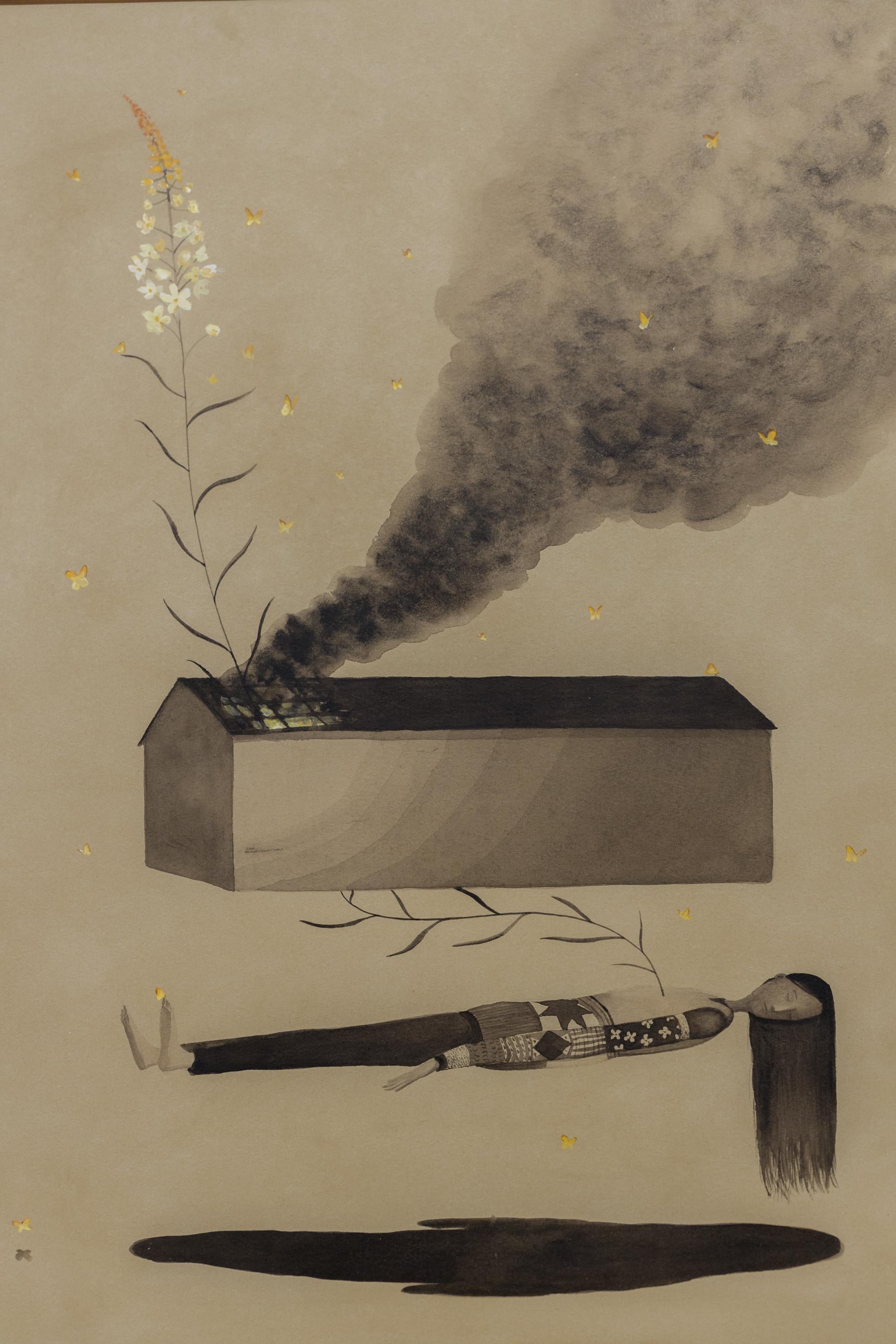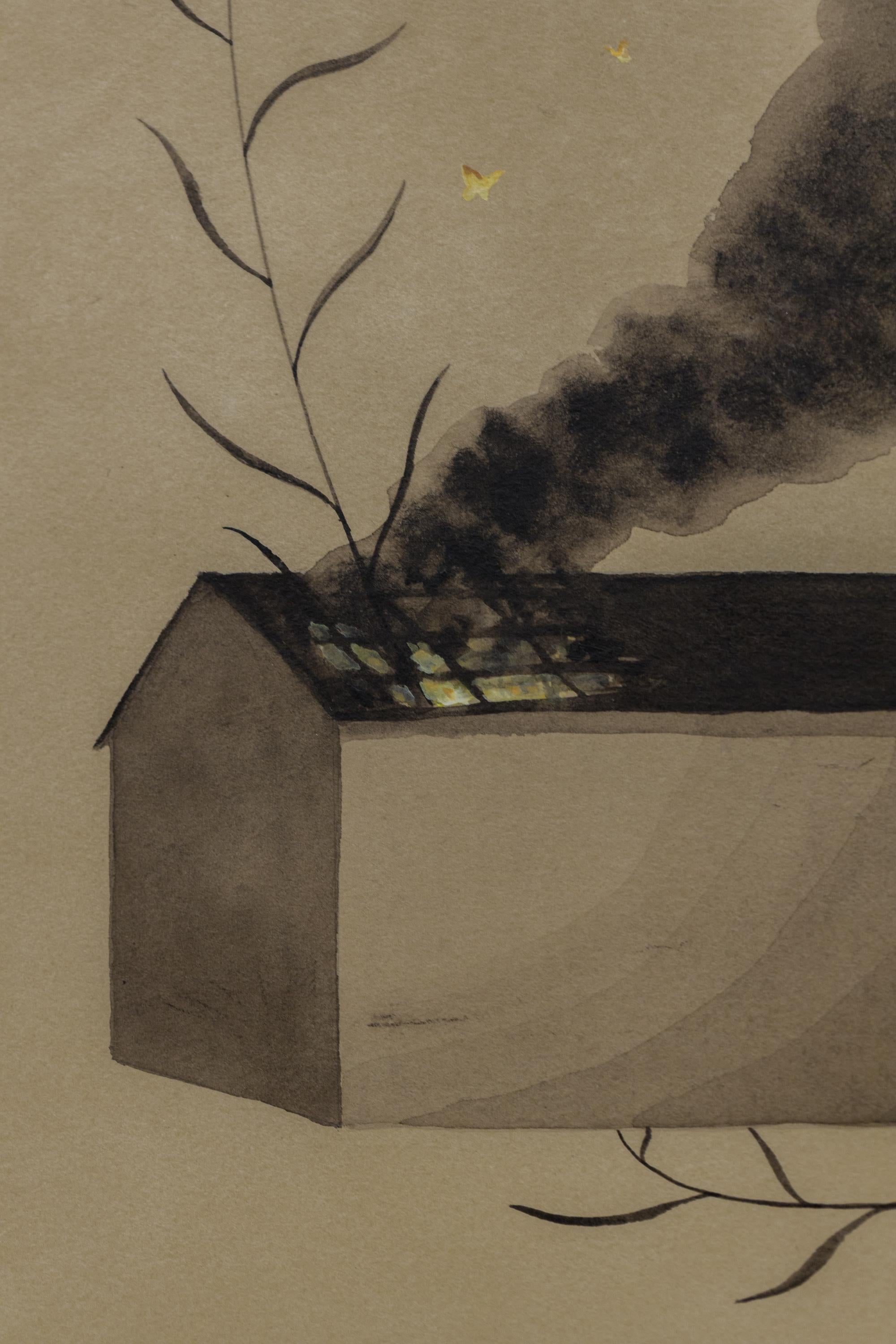 Graham Franciose - "A Cut Flower Can t Last I" Smoke and House Imagery in Grayscale Watercolor