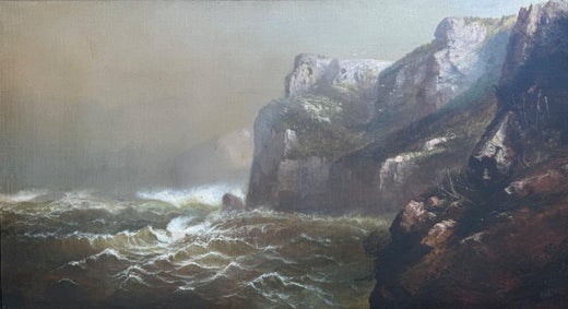 Ornamental, Painter". Landscape painting was popular in the mid 19th century, thanks in part to the influence of Charles Codman (1800-1842), whose paintings were collected for their very romantic sentiments. It is possible that Brown saw examples of Codman's poetic paintings, and was influenced by his works. Brown was one of the early artists to paint the coastline of Maine's Monhegan Island, where he depicted the headlands as awesome, mystical forces. Humanity versus nature, and the human relationship to nature, themes prevalent in mid and late-19th century literature and philosophy, figured frequently in his seascapes. He often painted in the White Mountains, and his name can be found in the guest registers of many places artists frequented in those mountains. The coast of Maine was also a favorite painting venue of Brown's for over thirty years. He depicted the wholesome outdoor environment of the state, with special fondness for the Casco Bay area and Grand Manan, an island off the New Brunswick, Canada coast. Brown also produced two widely distributed illustrations of Crawford Notch for the Maine Central Railroad in 1890. Harrison Bird Brown exhibited at the National Academy of Design in New York from 1858 to 1860, and at the Boston Athenaeum and Philadelphia Centennial Exposition in 1876. By 1892 he had become the best known native Maine painter of his time, and gained fame for himself and the state with a large canvas in the Maine pavilion of the 1893 World's Colombian Exposition in Chicago. In 1892 he was elected president of the Portland Society of Art. That same year, however, he moved to England to be with his only surviving child, a daughter, and spent the last twenty-three years of his life there. He died in England in 1915, and his work has been preserved at the Peabody Museum in Salem, Massachusetts and at the Portland Museum of Art. Most of his paintings were completed in New England before he moved to London, but he continued to paint until his death in 1915. Harrison Bird Brown's works can be seen at the Peabody Museum in Salem, Massachusetts and at the Portland Museum of Art.