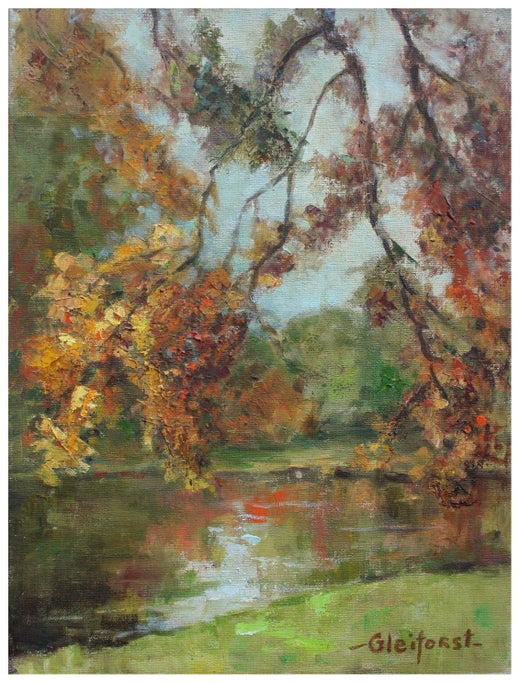 Gleiforst was born in Nebraska but soon moved to Oregon where she studied at the University of Oregon. She then settled in Beverly Hills where she began to paint. Her teachers included Nicolai Fechin, George Melcher, John Hubbard Rich and Nell Walker Warner for Still Life studies. Gleiforst primarily painted plein air, as well as landscapes and florals. During her lifetime, Helen Gleiforst frequently exhibited her artwork including one-person shows at Stanford University, Ebell Society of the Federated Women’s Clubs, the Beverly Hills and Westwood Women's Clubs, and at Clearwater Junior High School. In 2006, her work was featured among top California plein-aire painters in Santa Barbara in the Sullivan Goss Gallery exhibition titled “Early California. Gleiforst lived in Carmel, California.