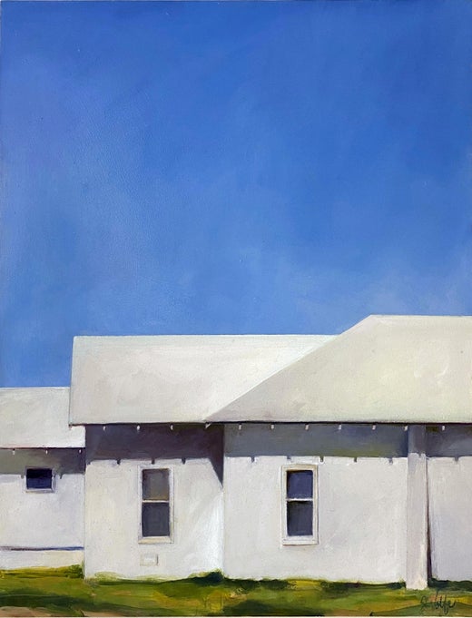 Doug says of this pastoral American landscape, "On Highway 2 along the Androscoggin River in Maine is the village of Rumford Center, where there is a small United Church. Its simple design and white facade are an iconic symbol of 19th century America. The church hasn't changed over the years, but the surroundings have. This painting is how I perceive the church and things were back in the simpler times when agriculture was the primary livelihood of its parishioners."
