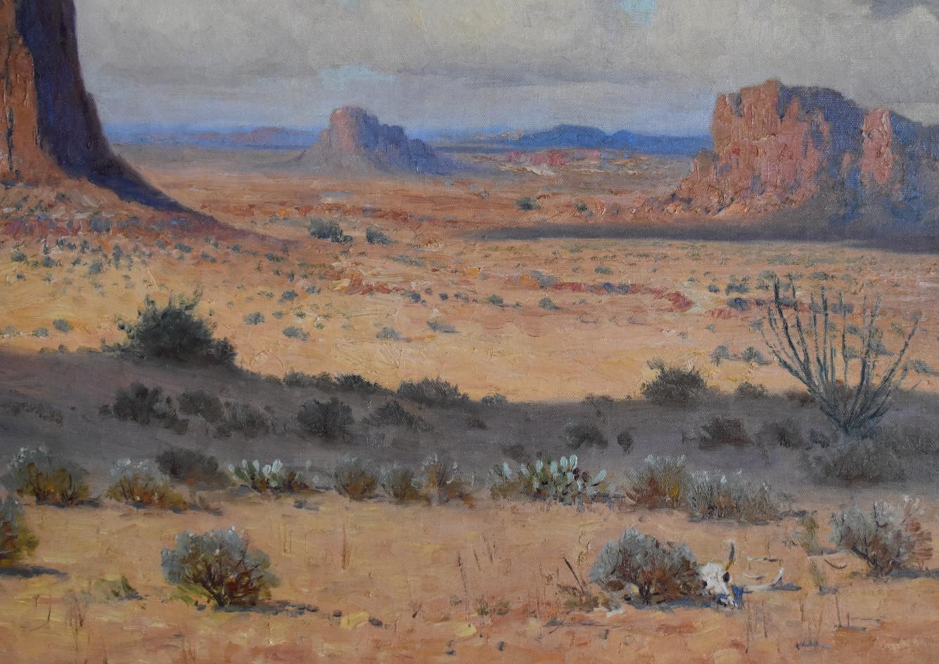 Antique Western Impressionist Landscape Monument Valley Arizona Oil Painting