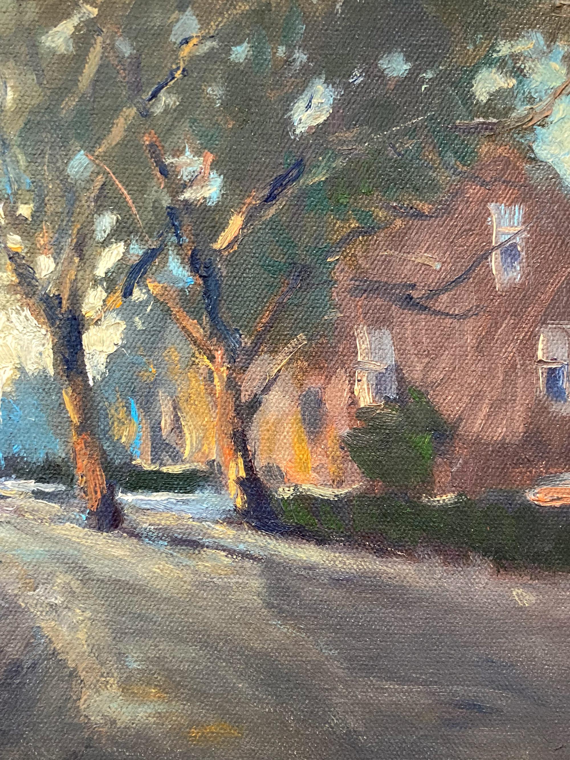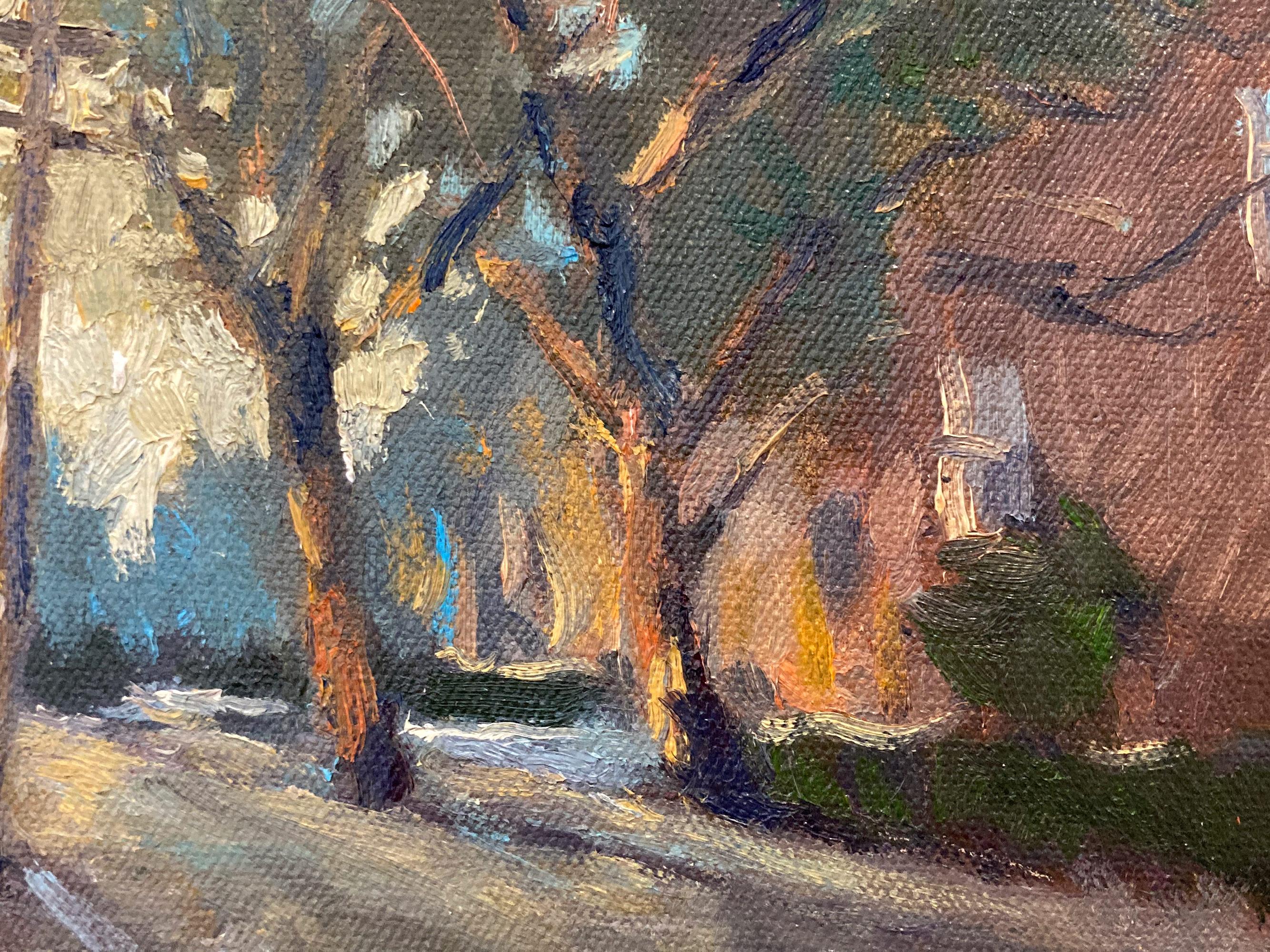 View All"Snow in Flatiron" Impressionist Oil Painting Snow Scene Style of Guy Wiggins