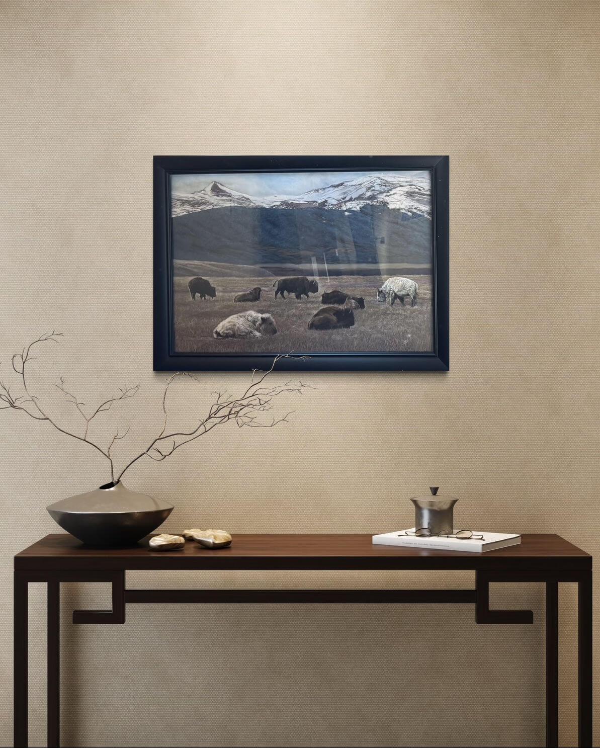 "It Was a Land of Plenty" by Shawn Krueger (United States) is a handmade landscape oil painting that is framed and ready to hang.
