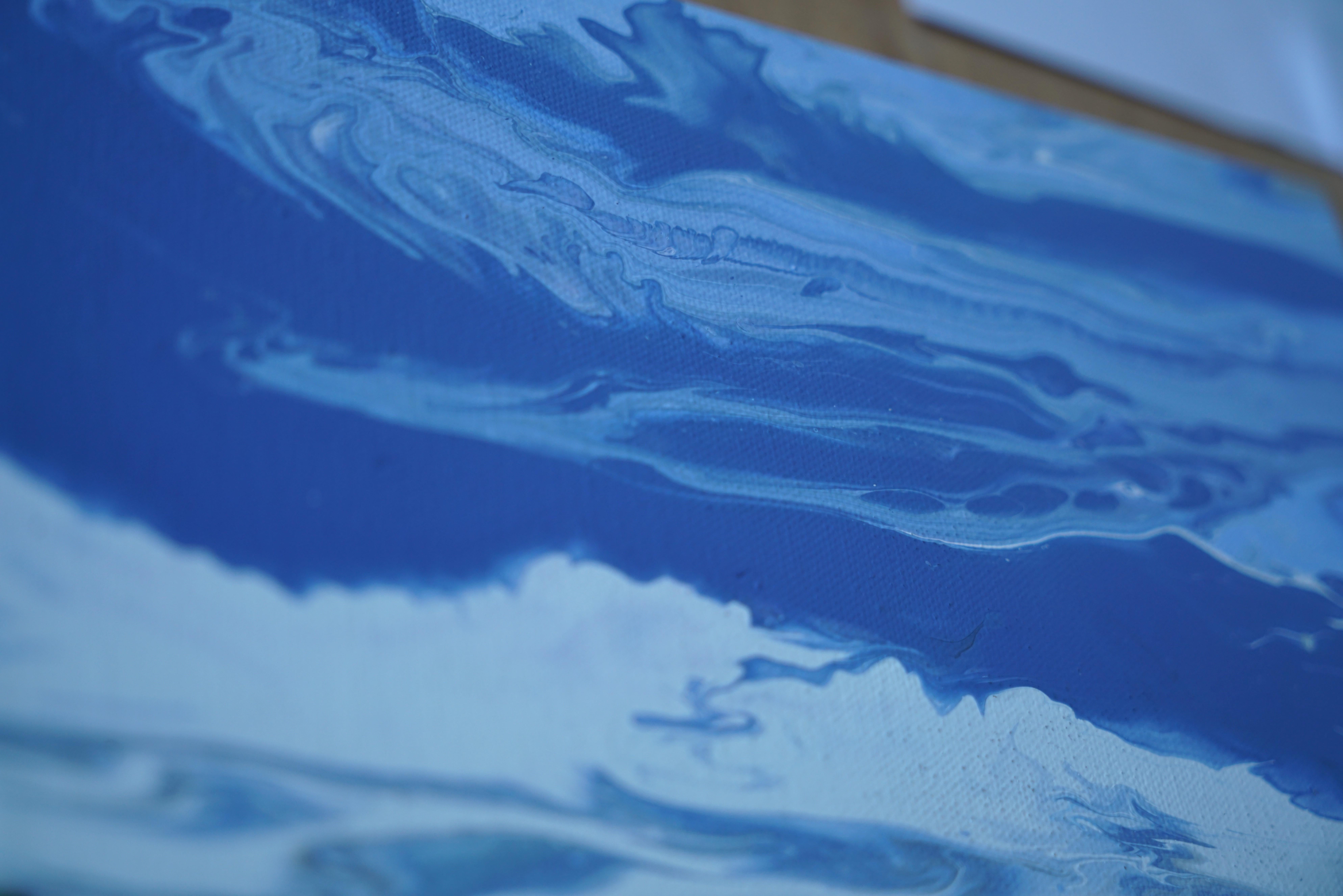"The unripe water" figuratif marine acrylique on linen canvas 74x90cm sea blue white