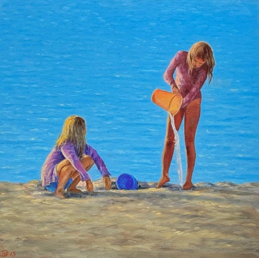 II / two 30 x 30 inch paintings - children beach play (diptych)