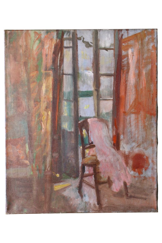 A wonderful mid 20th century portrait by the well listed artist Cecile Hertz-Eyrolles (1875-1974). The artist has used a soft palette of pinks and lilacs along with confident impressionist brushstrokes to sensitively depict the subject and her surroundings. There is a second oil study to the reverse of the board. Unsigned. On board.