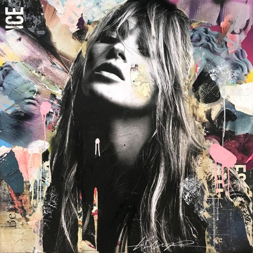 Gieler was born in 1982 in the Netherlands. In the late 90s, he began experimenting with graffiti in Amsterdam. For years Gieler remained active with spraying letters on walls but as he got older, graffiti evolved into street art, where he started to experiment on canvas. The street influences can be recognized strongly in his works, by using a very interesting and distinctive technique where he hand-tears posters from the city and reworks them into his canvases. He can compose unique images on canvas captivating the viewer with the voice of the people and his own. Blending urban elements in a highly intricate way, he creates beautiful compositions that differentiate him from his counterparts. Since 2014, he has been diligently creating this body of work by replicating the captivating beauty of pop icons with his style. As an emerging artist from The Netherlands, his collage works are always being provided with posters he collects from walls out of the streets; he has developed a technique of ”sustainable art" which gives a living and edgy character to his paintings. He also uses other old materials, like damaged brushes, blunt Stanley knives or other older and sometimes broken tools. Since by working with these tools and materials the result is always more surprising and exciting. Gieler can create a completely unusual and powerful body of work by using rebellious and nostalgic plays on icons of the past and present such as Brigitte Bardot, Kate Moss, Elvis Presley and Marilyn Monroe. Working on mostly larger canvases, the presence of these pop pieces make a dramatic statement; but once looking closer at the details, the viewer can discover exciting, rich textures by the many layers of selected hand-pulled posters. Gieler's evolving fascination with the voice of Amsterdam is now expanding to different cities such as London and New York. He aims to include the environments of the world into his pieces by using considerable efforts to bring the two together. His journey through the cities on bicycle leaves him soaking up the backdrop of the streets, which then, later on, translates into the passion he puts into creating his compositions. The result is a refreshing take on pop art that excites the viewer with strong suggestions of color, texture, and design.