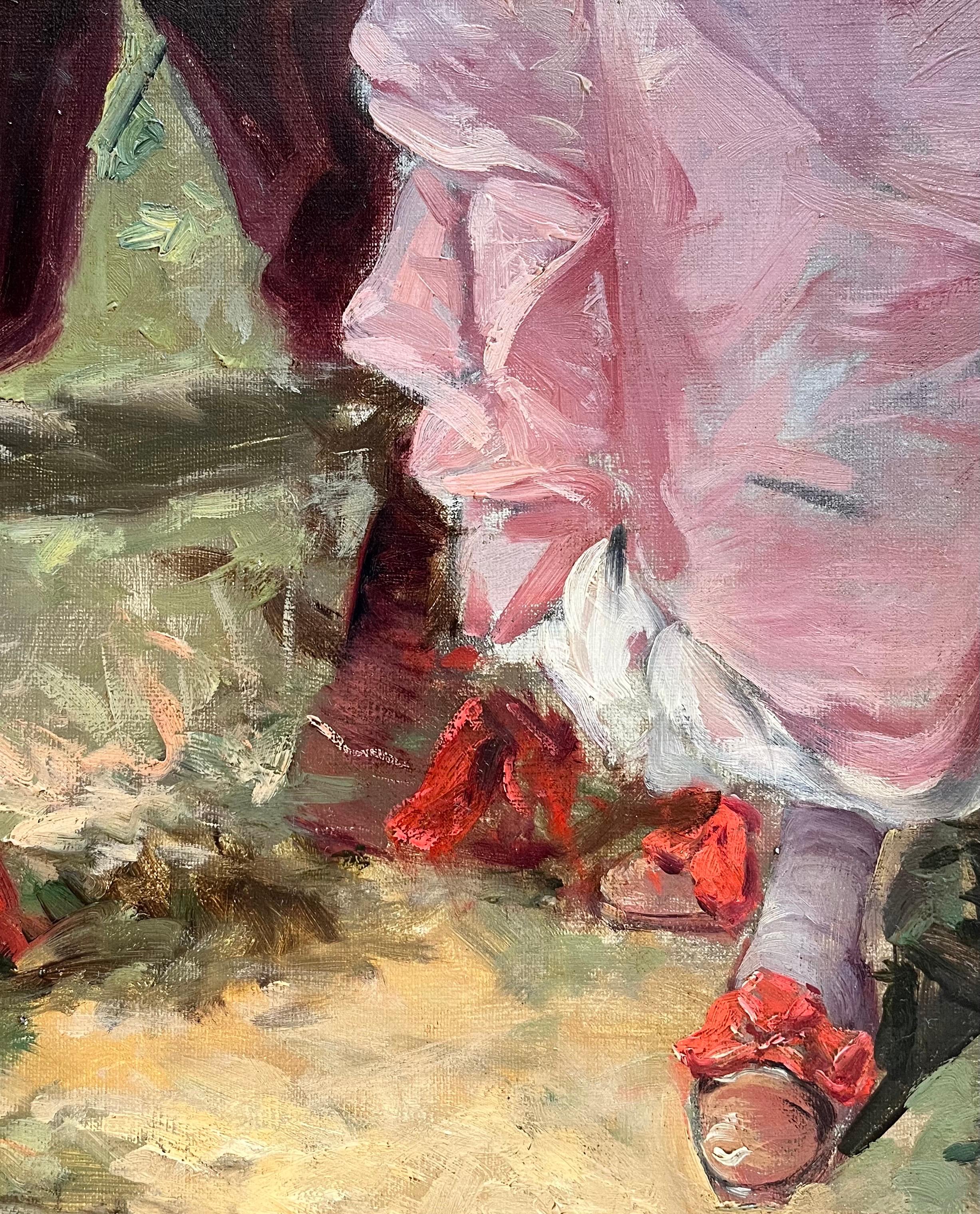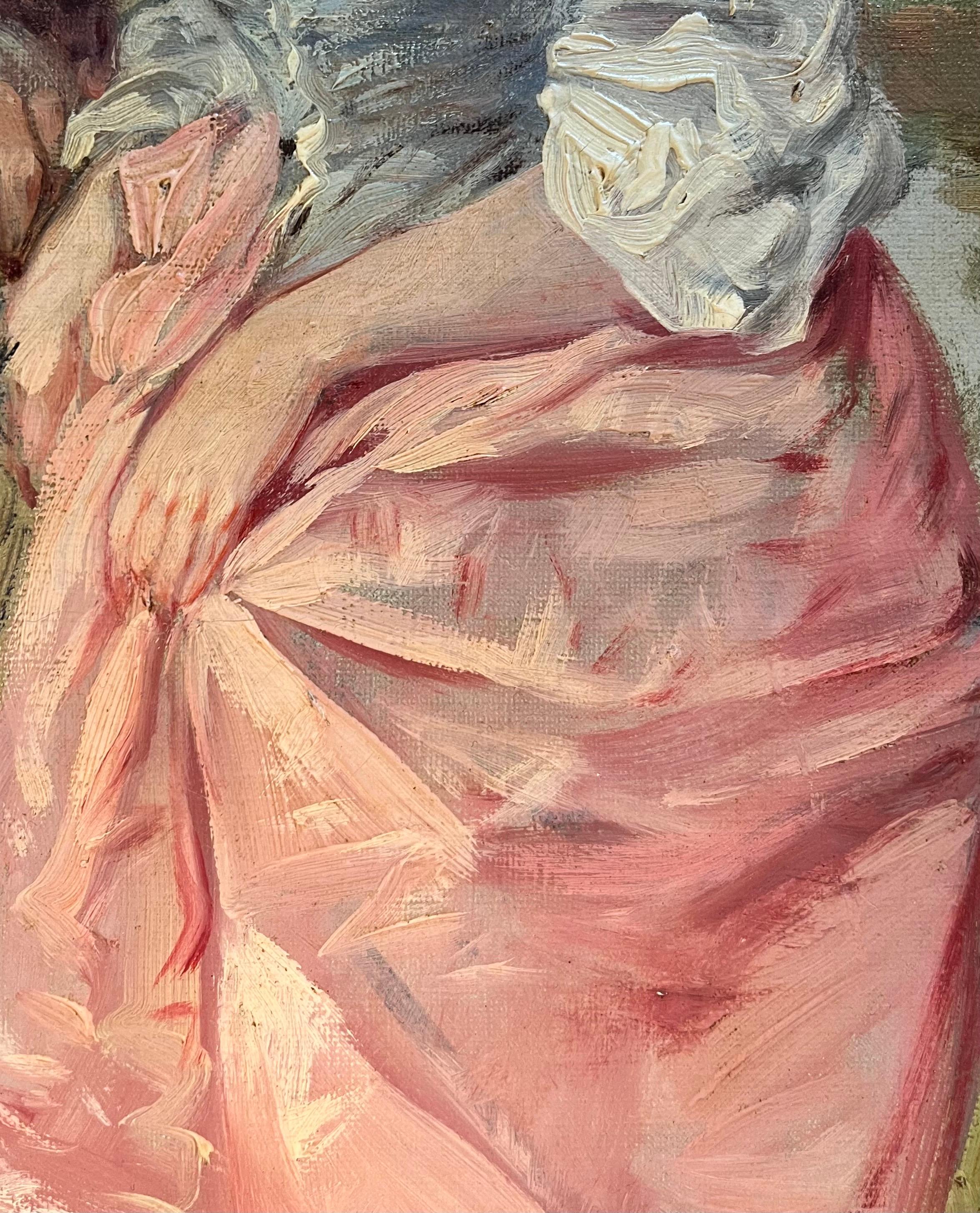 Step into the elegance of a bygone era with this stunning oil on canvas by Joan...