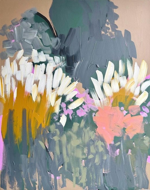 Originally an abstract floral tribute to autumn’s quiet beauty, this painting took on a new layer of meaning when a friend spotted a hidden image of a kissing couple within it. The subtle, grounding palette now holds a peaceful essence with a hint of romance. Created in Hampstead Heath.