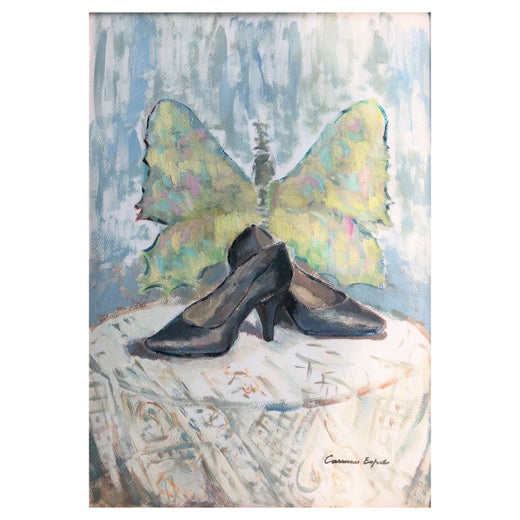 s shoes and flowers oil on paper paintingc.1980