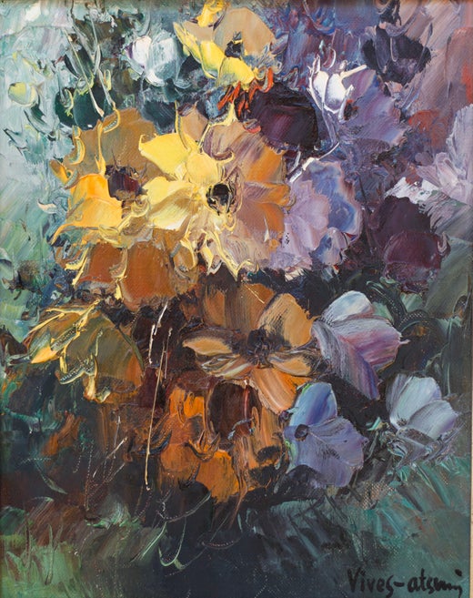 Jose Vives-Atsara’s use of a palette knife in painting allowed him to blend rich pure pigments to achieve his goal of creating a powerful statement of color directly on the canvas. This style is intended to produce works that are distinctively Vives-Atsara. Vives-Atsara is represented in public collections including the Museum of Modern Art, Spain; Fort Worth Art Museum, Texas; His Royal Highness Juan Carlos, King of Spain; the Vatican; the State Capitals of many southern states of the United States. His focus was on depicting the character of the people of Mexico, colorful and strong florals and his Texas landscapes, which he regards as breathtaking. Vives-Atsara considers himself fortunate in his ability to approach, even in a small way, the wonders that God has offered to man. For more than 40 years, hard work and discipline have been his way of life. According to him “discipline in our lives is something that we sometimes do not like today, but helps us achieve what we really want tomorrow. Jose Vives-Atsara died in San Antonio on January 13, 2004, and is buried there in Sunset Memorial Park Mausoleum.