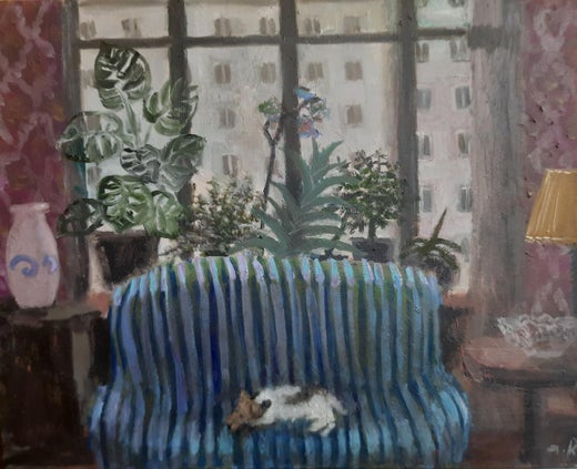At the Window, Still Life, Original Painting, One of a Kind