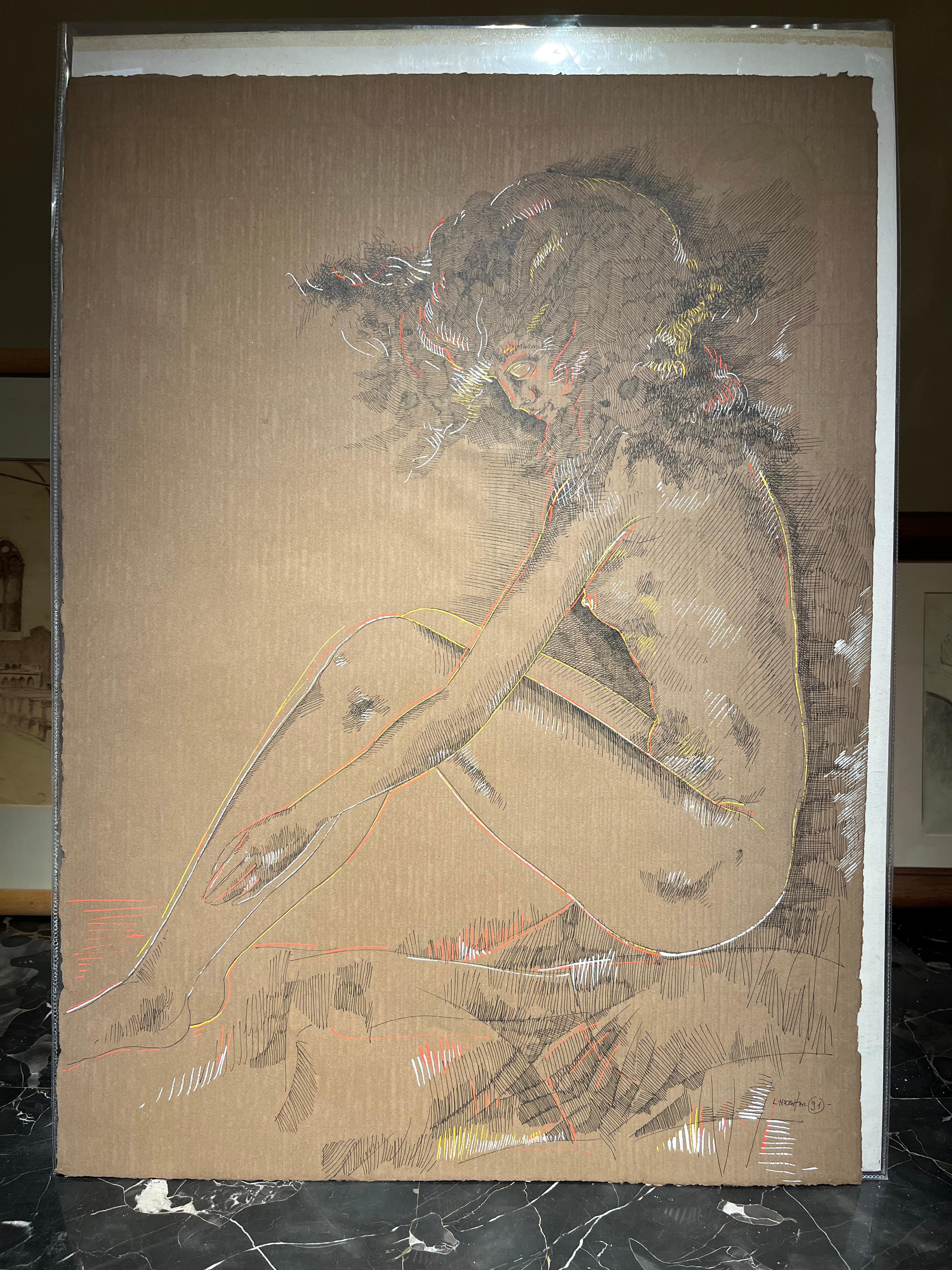 Oil, Carbon Pencil, Pigment