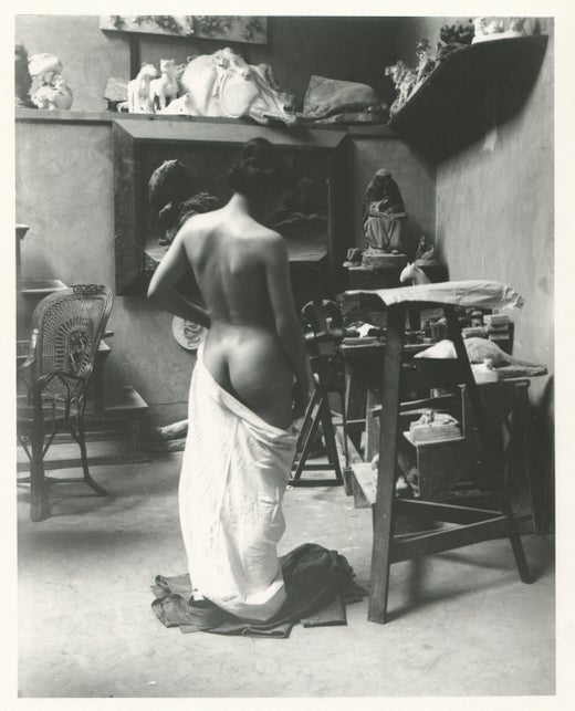 Nude Dancer, from The Female Figure series by Karl Struss features a nude woman standing on one leg, with her leg lifted in an arabesque position. Her arms are raised above her head ...