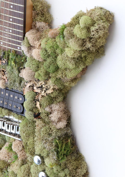 Photography helps Kevin Krag to freeze in time his one-of-a-kind sculptures capturing the spiritual dimension, vulnerability, and mortality of his ephemeral pieces. Using ethically sourced archival photography cotton paper integrates another organic and sensual piece to the puzzle, standing the test of time and having the least possible adverse impact on the environment. Working across different media, his productions incorporate nature in a controlled and ritualistic manner, often focusing on life and death, sound and silence, feminine and masculine. For Krag, a guitar is a tool to create an encounter with nature, to spark a dialogue about beauty, to reveal the rapture of a silent music score. Pushing physical limits with the works —by adhering paint or plants or submerging guitars underwater — is part of a personal process that rushes spiritual and emotional limits to discover his sense of self.