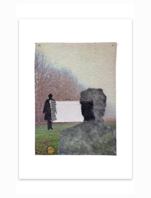 This piece titled "Fallen" is an original piece by Han Cao and is made from embroidery, inkjet print, and a vintage photograph. This piece measures 21" x 17.25" framed and is shipped...