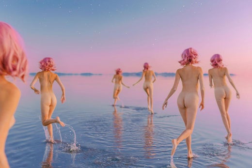 Olson describes Rapture as, “a biography of my dreams.” This series represents, for her, the world that lies just beyond consciousness—where “time shifts, gravity loosens and we slip into another realm.” Through the images she conveys the dreams she’s had since childhood of floating weightless in the sky. In reality, Olson photographed them from above in swimming pools in Seattle, Washington combining images with clouds photographed mostly in North Dakota, where she grew up and visits each summer. The effect is ethereal. Her models could be construed as angels.