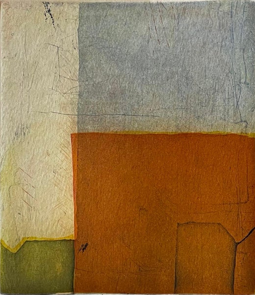 Bozon’s use of etching and aquatint emphasizes material presence—soft gradations, scraped passages, and traces of pigment embedded in the surface. Small interruptions of red and ochre animate the lower field, introducing a sense of geological time and weathered terrain. The result is a contemplative work that balances abstraction with place, inviting slow and attentive viewing.Signed, titled and numbered from the edition of 50.