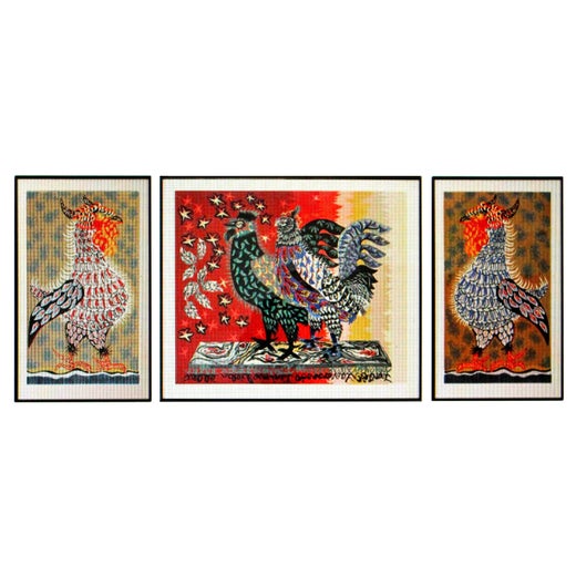 While Lurçat’s best known works are his tapestries, he also produced engravings, book illustrations and ceramics. The Museum of Modern Art in New York City holds some of these book illustrations as well as a few other works in its permanent collection. Other works by Lurçat are held in the collections of the Detroit Museum of Fine Arts, the Musée Nationale d’Art Moderne, the Museum of Chicago, the Philadelphia Museum of Art and the National Gallery in Washington DC.