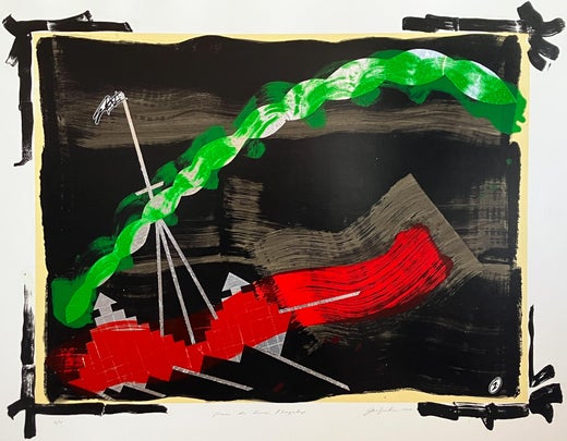 This very fine print with acrylic and collage the collage elements are foil) is by the noted American artist Joe Zucker (1941-). It is in very good condition.