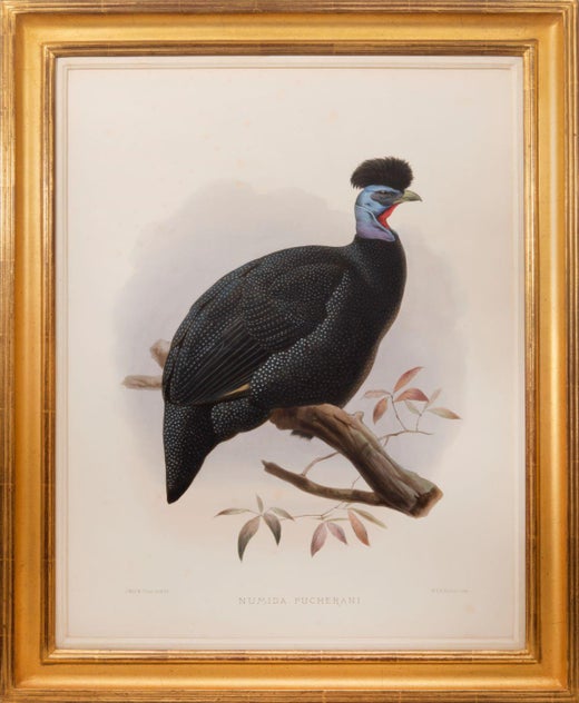 A large print of John Gould & Henry Constantine Richter of Temminck's Tragopan from his published book " Birds of Asia ". John Gould was influenced by James Audubon paintings of bi...