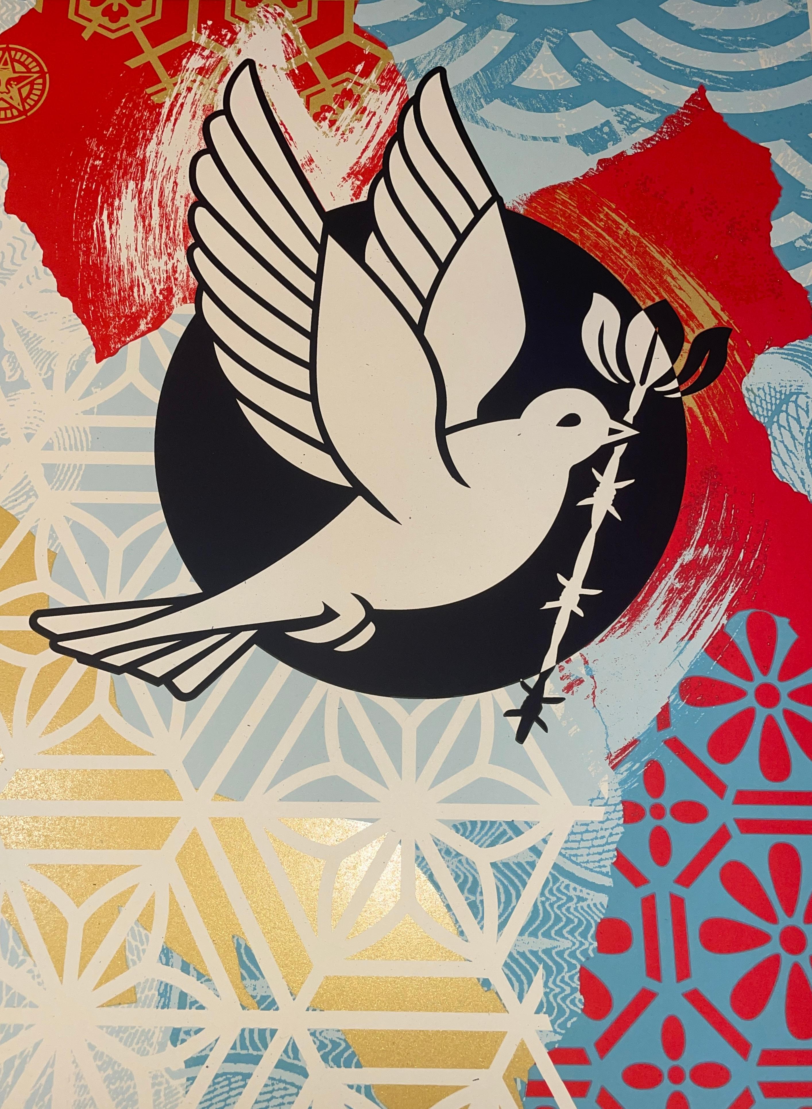 Shepard FaireyShepard Fairey Barb Wire Dove Collage Screen Print Contemporary Street Art2023
