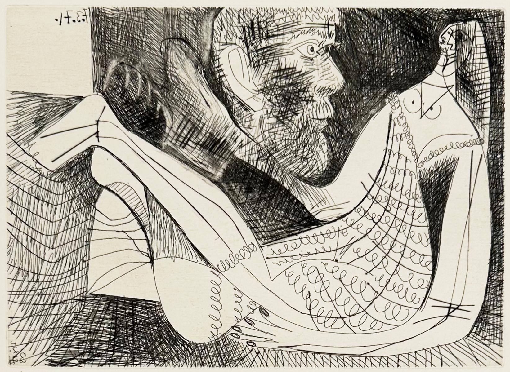 Beneath the inky blackness, the painter’s irrepressible energy electrifies this pair of intaglio prints.
