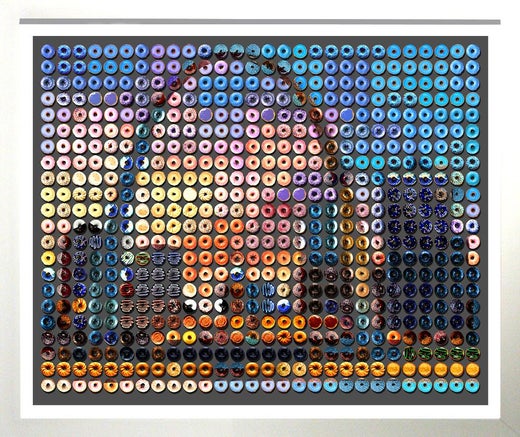In what could be considered doughnut Pointillism with a meticulous approach reminiscent of Chuck Close’s work, each pastry in Candice CMC’s portraits is photographed separately and then studied for its color, tone and intensity. The artist then places each image in an evenly spaced grid to make up the desired portrait.