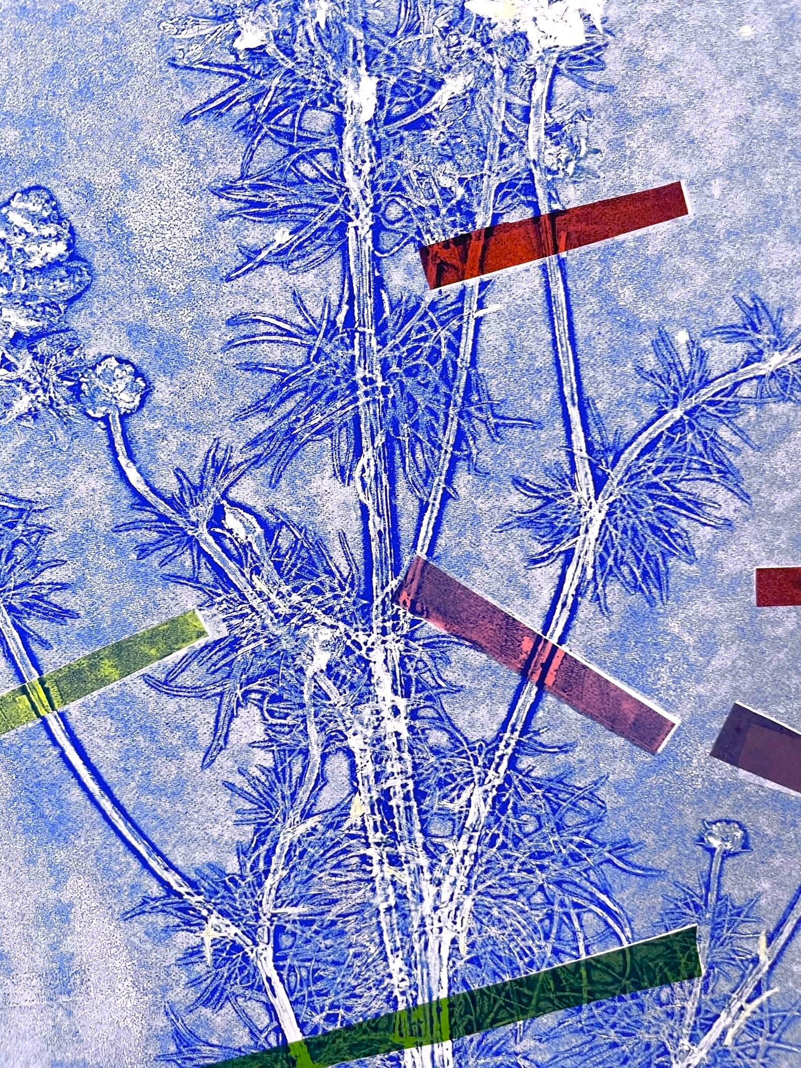 Tenuousness3 (blue, organic, patterned, water chine colle, monoprint)