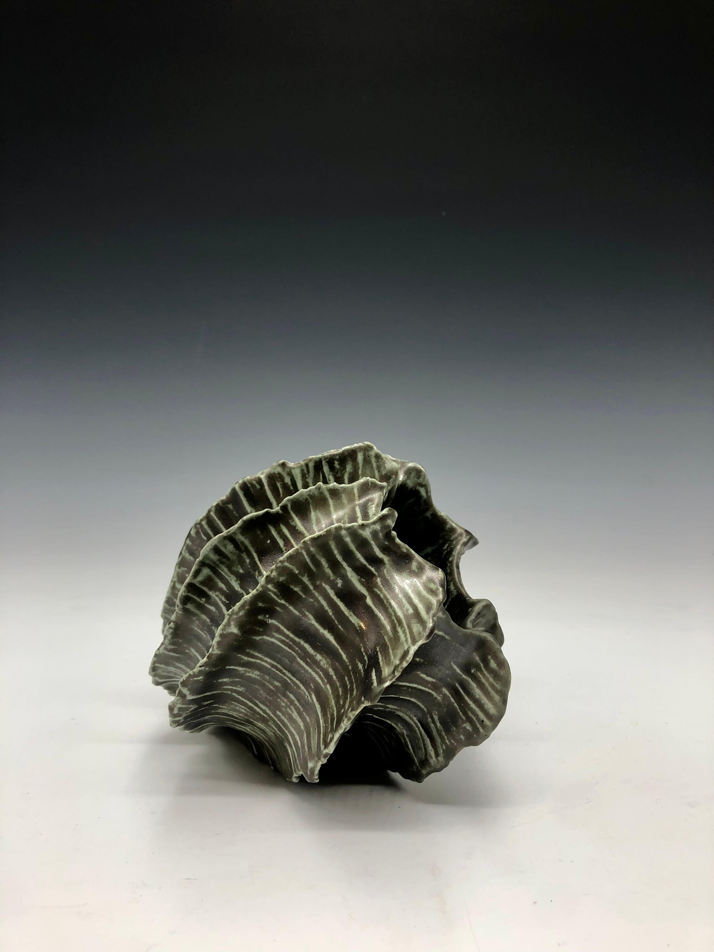 ceramic, pottery, sculpture, vessel, seapod, organic form, clay, art and design, design, ceramic artist, home decor, tabletop, interior design, green, glaze, stoneware, biomorphic, coral, sealife