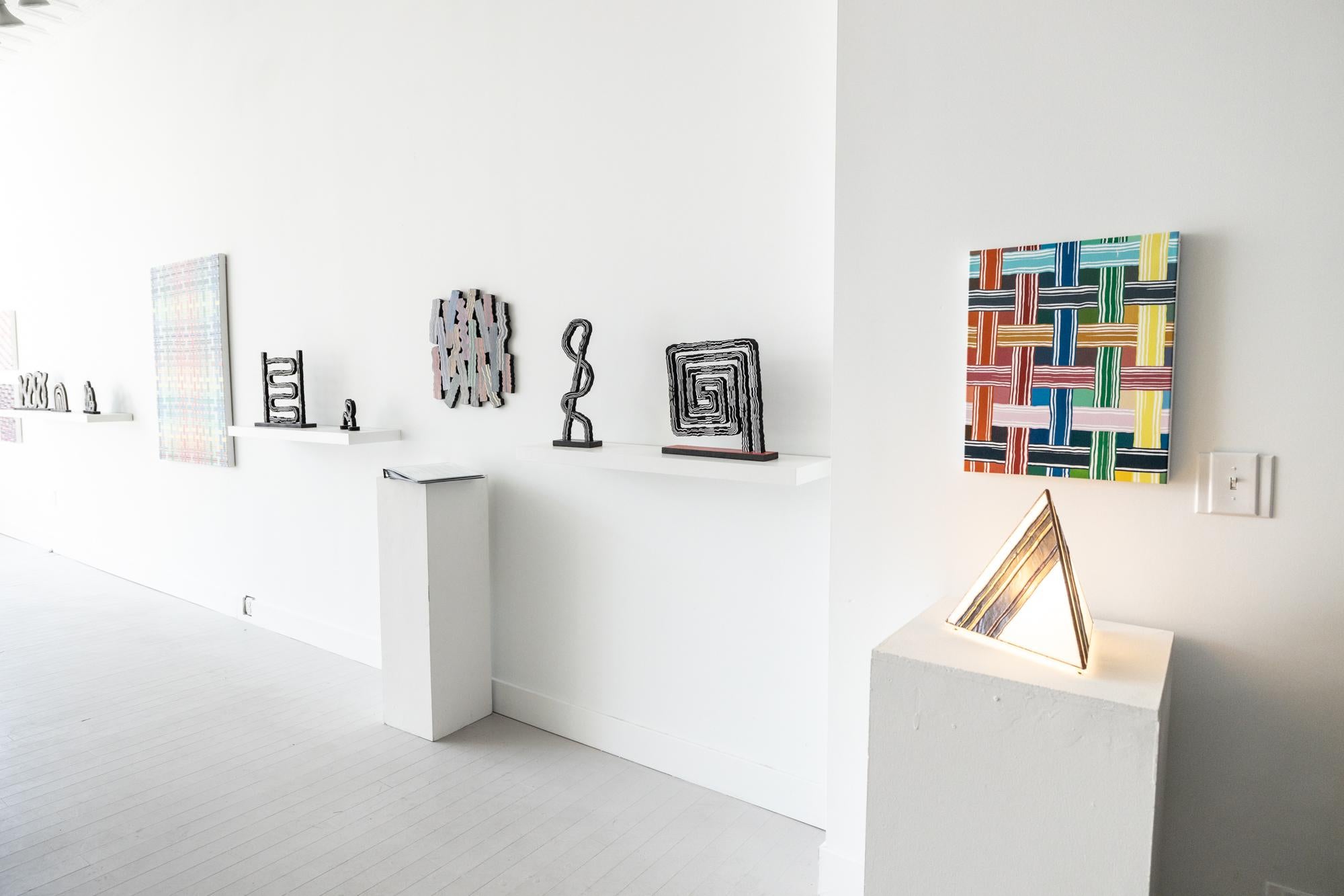 Jason Andrew Turner (b. 1982, Birmingham, AL) is a visual artist currently based in rural North Carolina. In these newest works, he begins with an armature of sumi ink, laying a thread of black ink as a pathway. Color is applied along the linear architecture relating to the emotional and cultural refection of color meaning. This slows the immediate path to create a narrative that is both reflective and a reaction to society at large. The configurations are often repeated gestures that relate with behavioral actions, emotional states, anxiety, and symbiotic community. Jason holds a BFA from Savannah College of Art and Design.