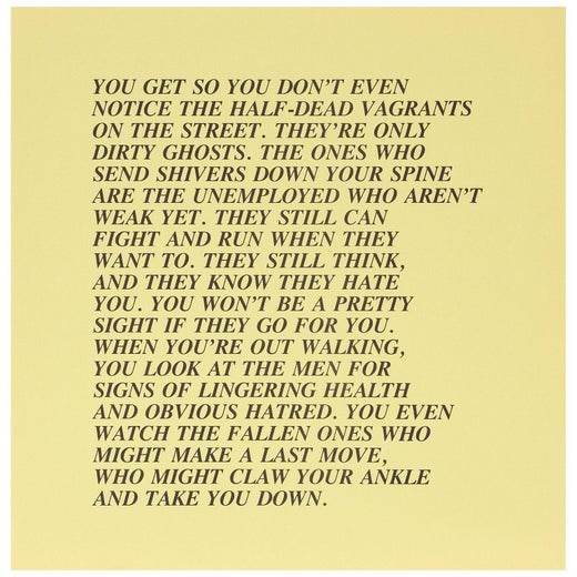 “I used language because I wanted to offer content that people — not necessarily art people — could understand,” the Ohio-born Holzer told Interview magazine. She received her MFA in painting from Rhode Island School of Design, where her work was influenced by Abstract Expressionism. It was while in the Independent Study Program at the Whitney Museum of American Art that Holzer became inspired to work at the intersection of public art and language.