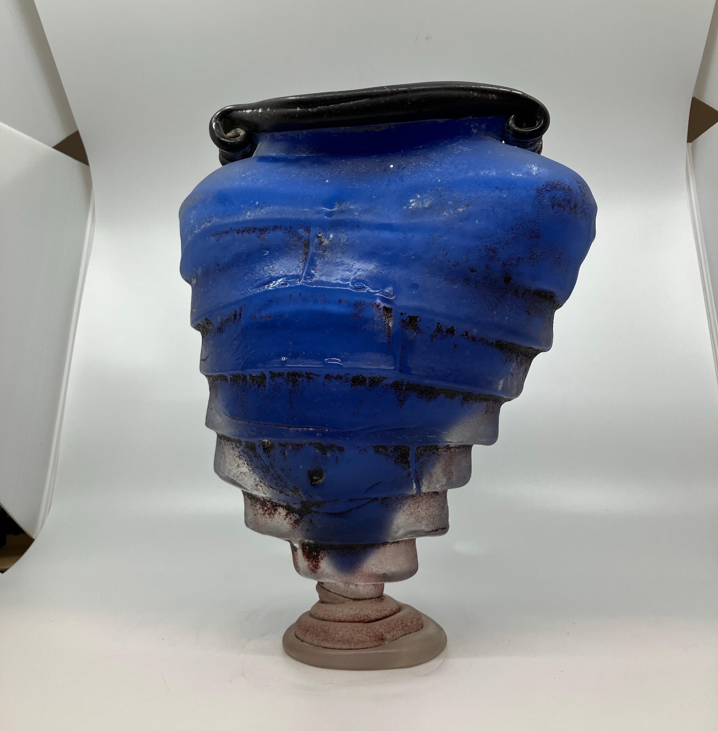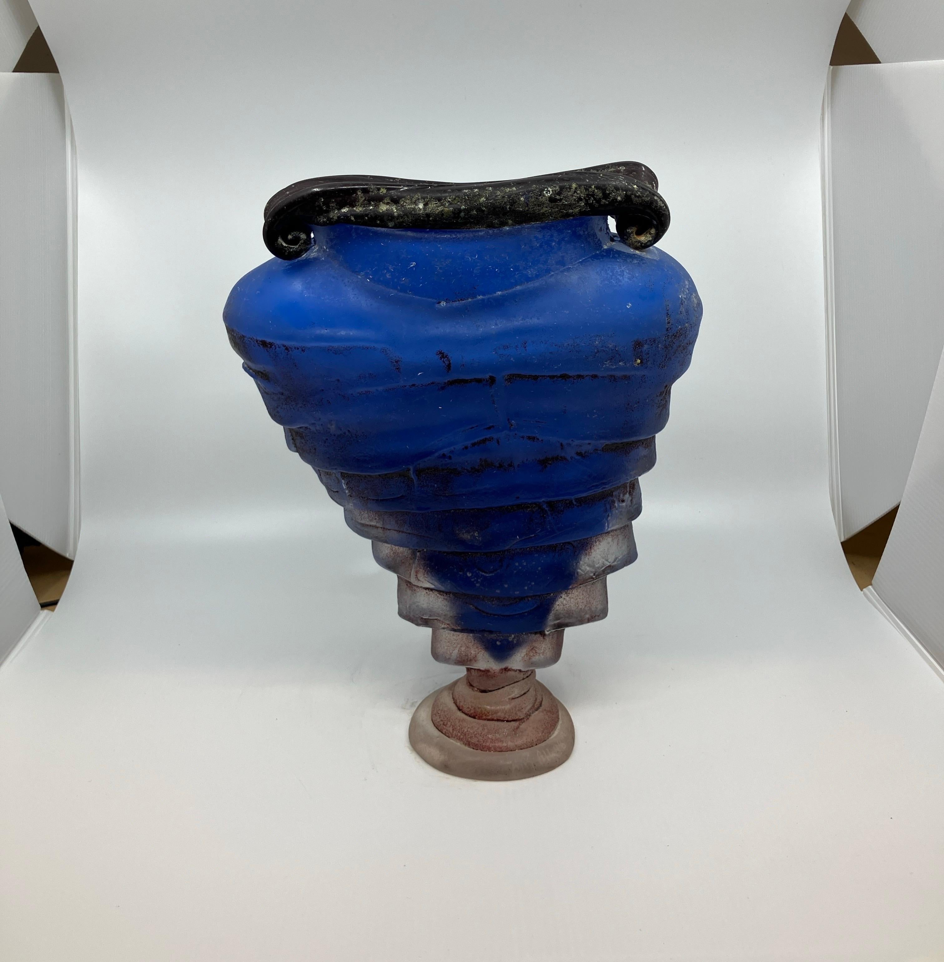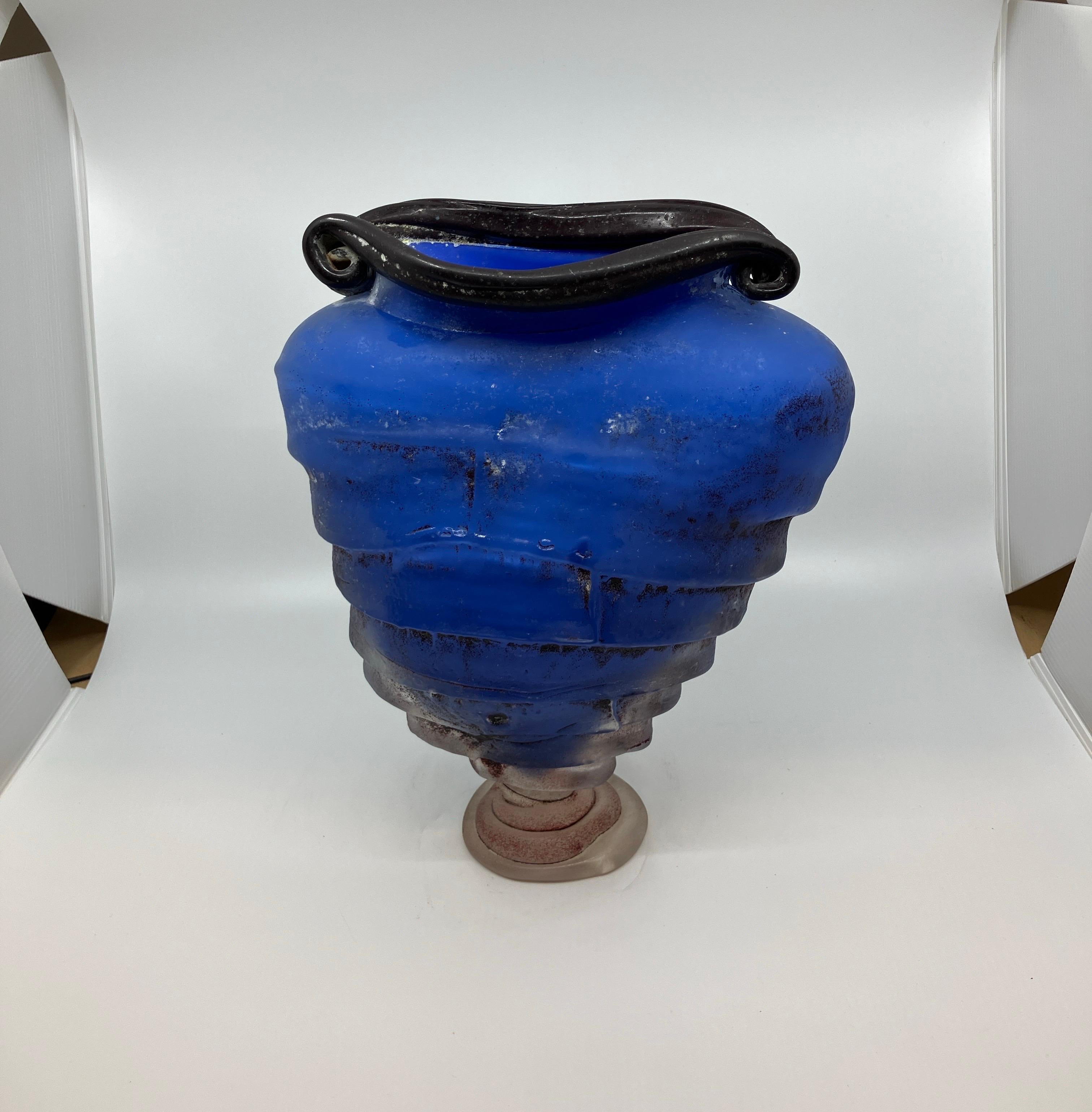 Tim Lazer Art Glass Vase Blue Post-Modern 1990