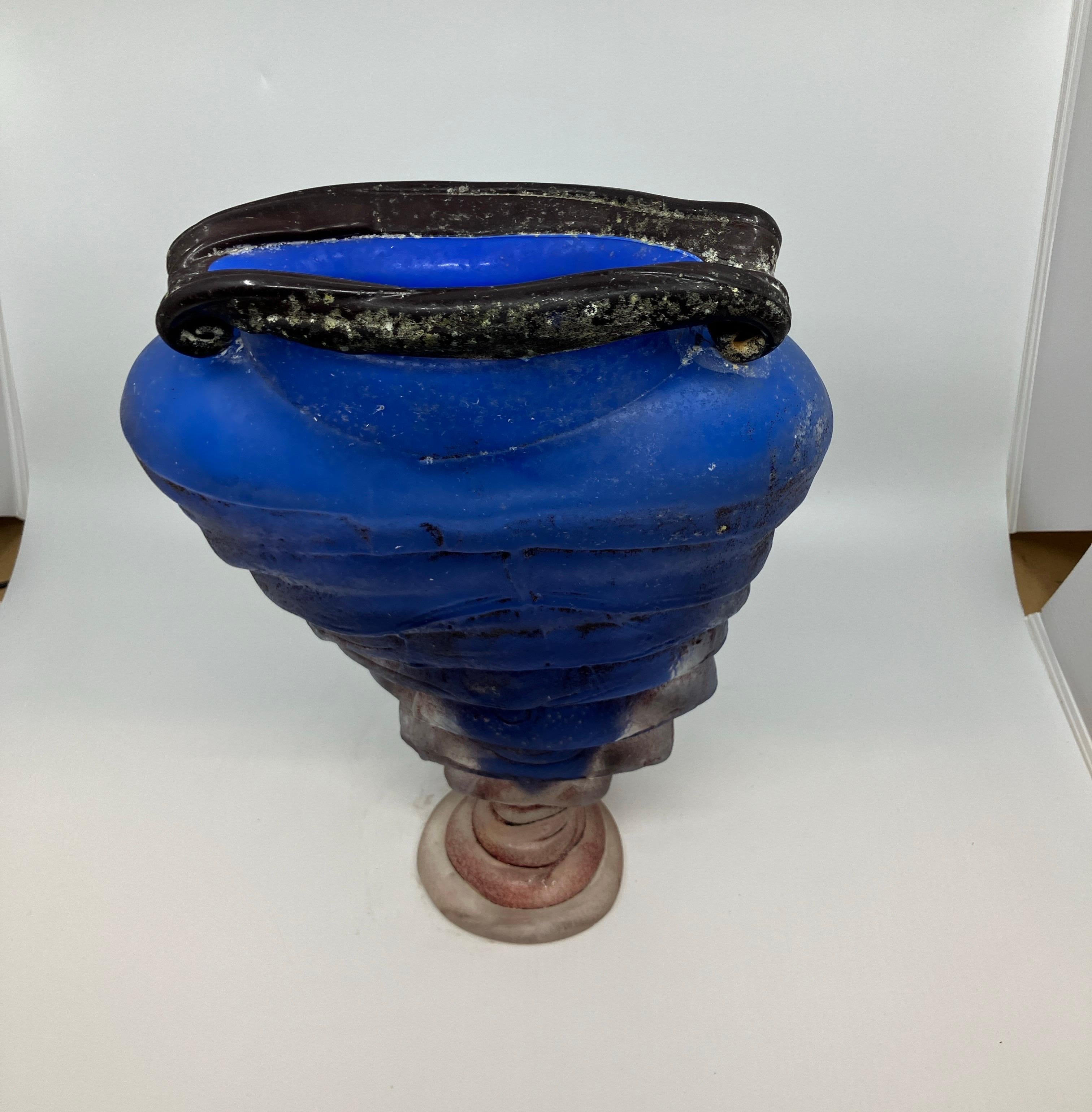 Vintage Studio Hand-crafted Blue Art Glass Vase Sculpture